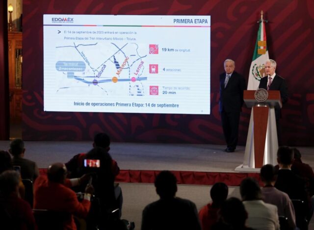 «Agradecer mucho el impulso que le está dando el señor Presidente para poder iniciar, en una primera etapa en operaciones, para el 14 de septiembre como lo ha planteado el señor Presidente, en donde entrará en operación desde Zinacantepec hasta Lerma, son tres estaciones más la terminal, es un trayecto de 19 kilómetros, en un tiempo de recorrido de entre 16 y 20 minutos, lo que ayudará a mejorar, de entrada, la movilidad en esa zona del Valle de Toluca y agradecemos mucho el respaldo que le da el señor Presidente al al Estado de México», expresó el Gobernador durante su participación en esta conferencia de prensa realizada en Palacio Nacional.
