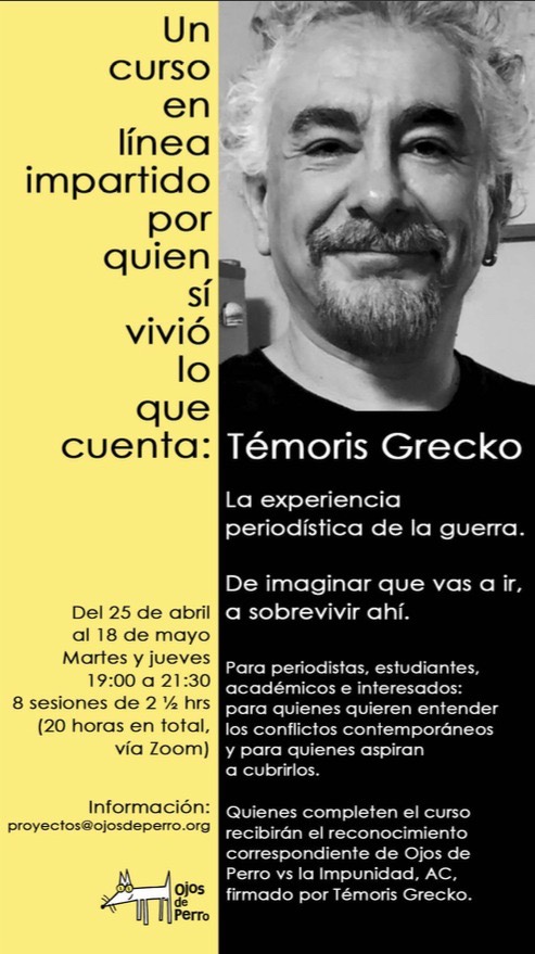 Egresado de la UAM-Xochimilco Grecko ha cubiertos los conflictos recientes de Medio oriente, Líbano Tuareg…incluso vivió ser rehen. Exploró las aristas de casos como Ayotzinapa en su documetal “Mirar, morir”. Hoy está en la zona de gaza. Dio esta entrevista a sus alumnos, del Curso La experiencia periodística de la Guerra”, desde Ramalah.