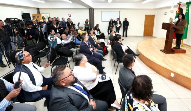 La máxima representante de la UAEMéx, convocó a conferencia de prensa y comentó que la Administración Universitaria 2025-2029 está comprometida con la construcción de una institución cercana, con apertura y diálogo permanente, que pone en el centro el bien colectivo, la retribución social y el cuidado comunitario como ejes principales de esta casa de estudios.